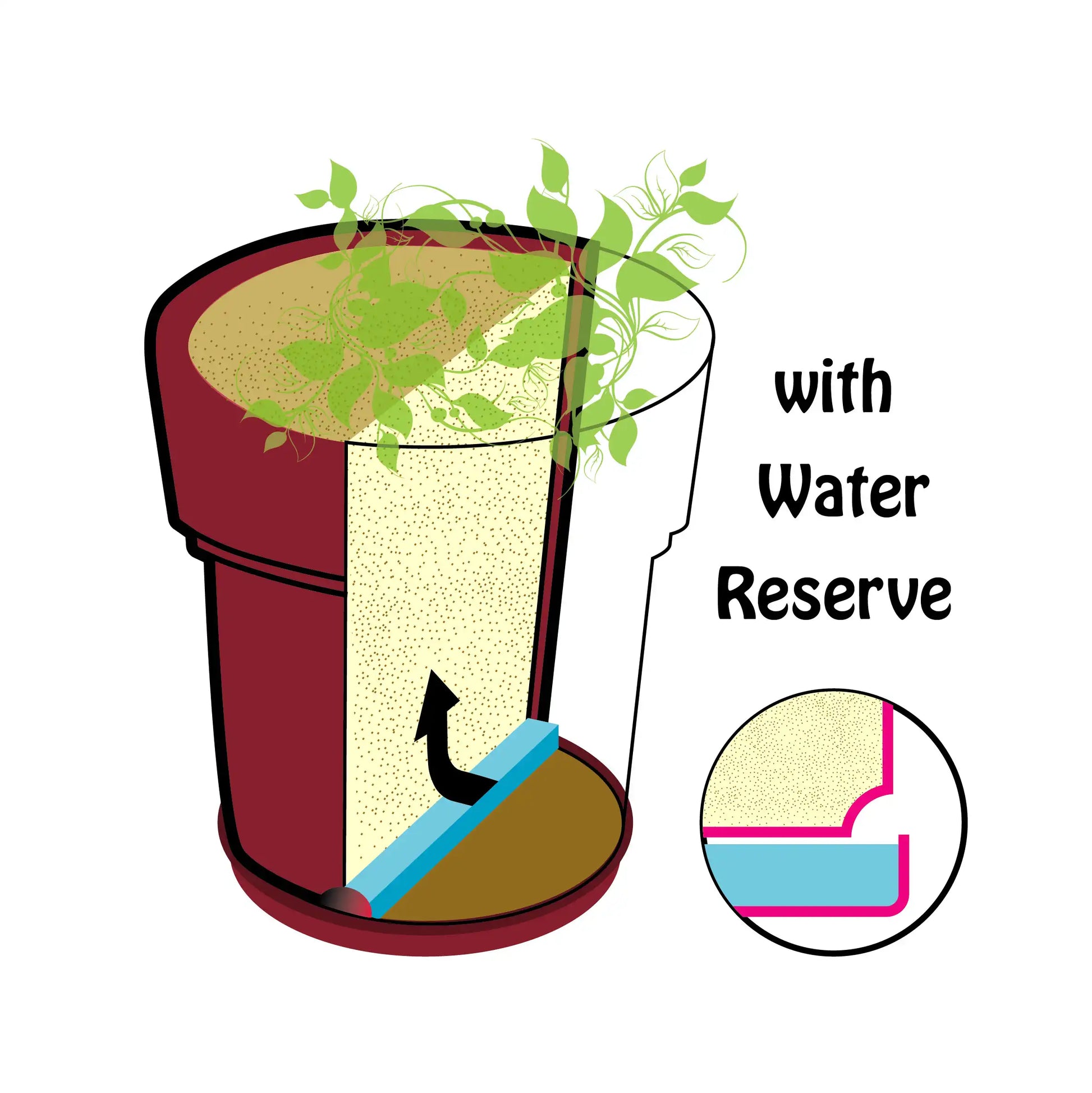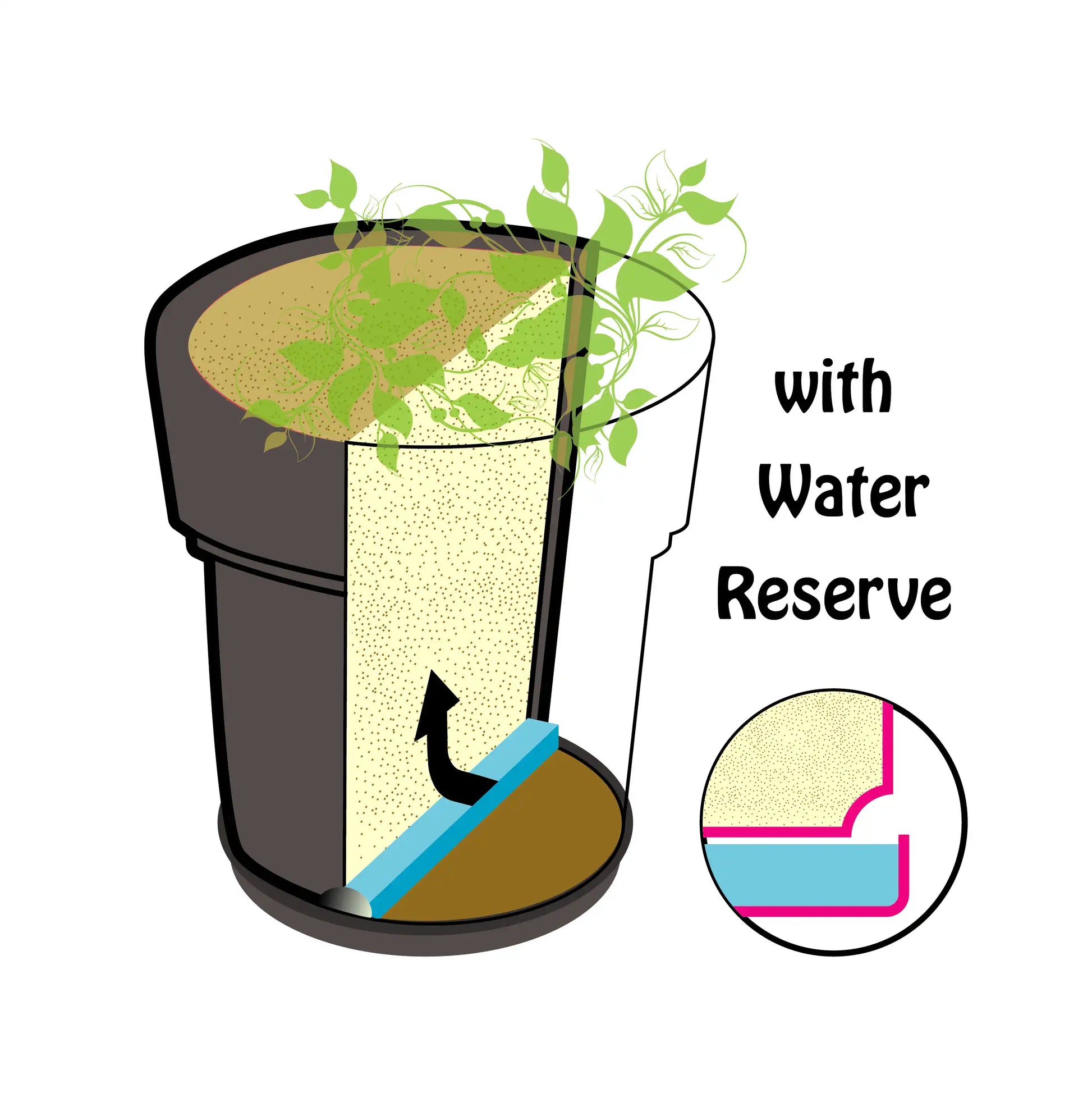 احتياطي الماء - يأتي هذا الوعاء المربع مزودًا بآلية احتياطي الماء التي تساعد على تغذية نباتاتك باستمرار وإطالة عمر نباتاتك الثمينة.