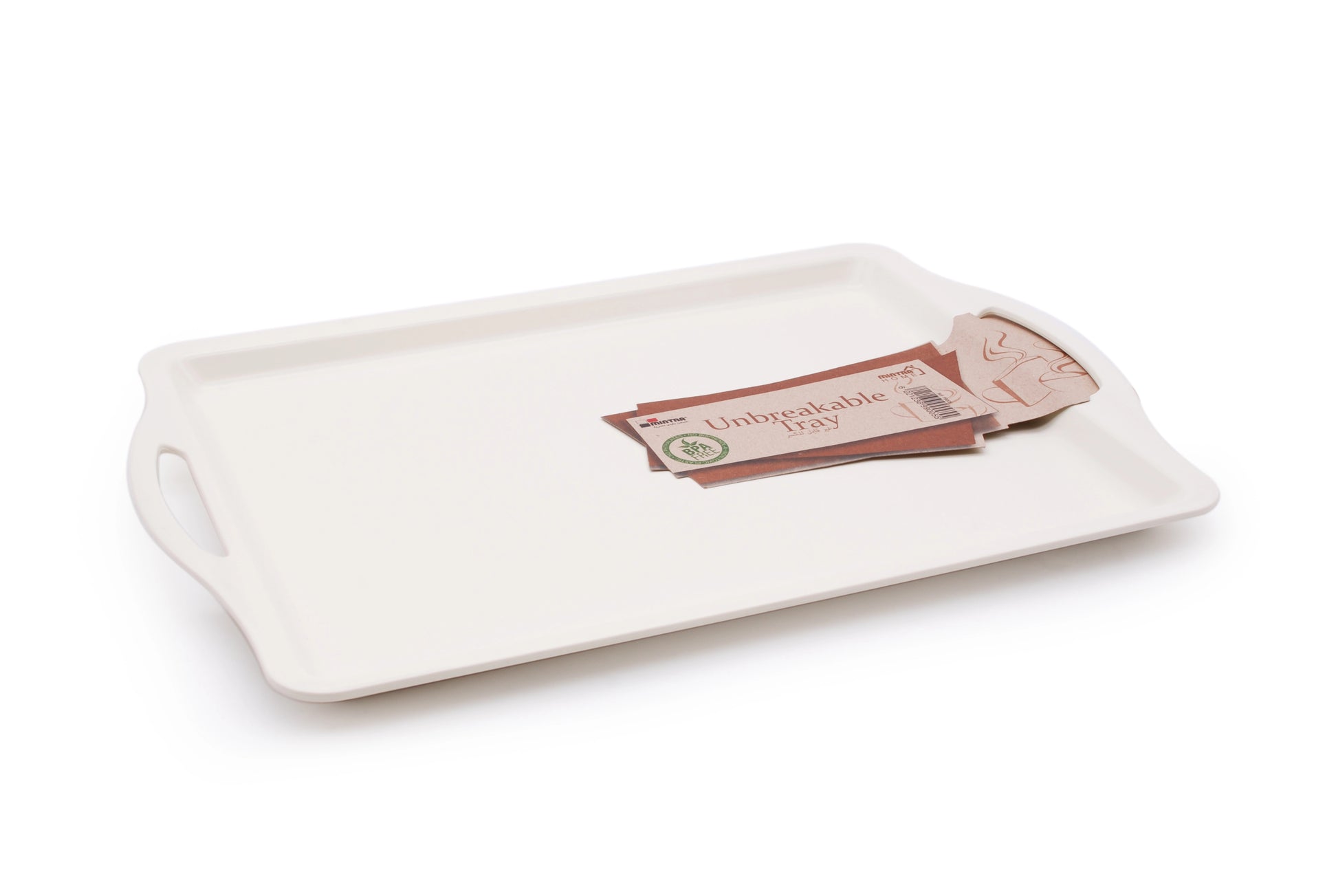 Stain and odor resistant, color blends with any décor. Tray is made of durable yet light-weight plastic. It features raised edges to help ensure that your dishes don't slip off the edge.